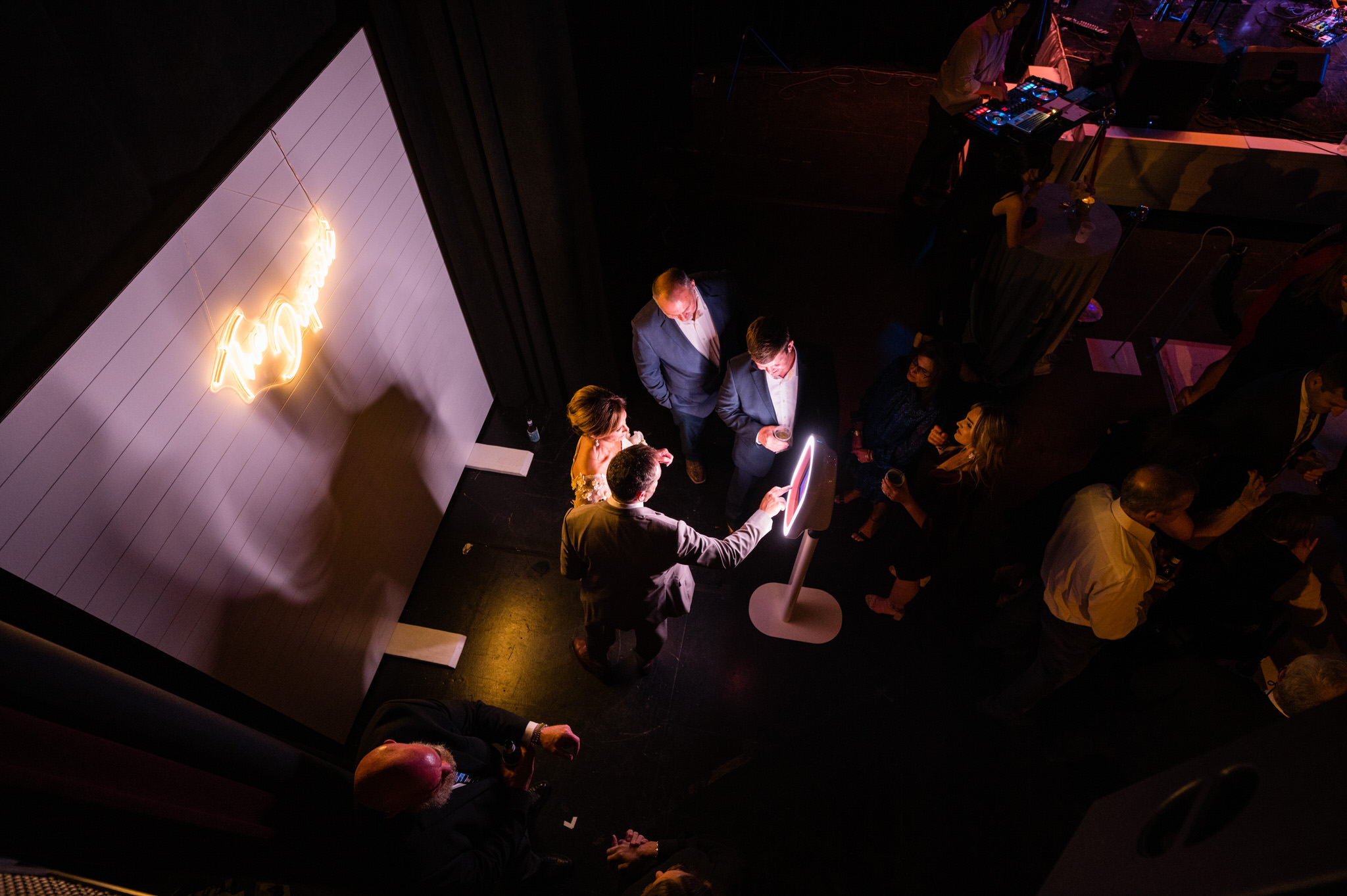 A sleek, modern, 100% digital booth with custom wedding overlays, glam filters, and instant sharing—made for maximum fun and minimal footprint.